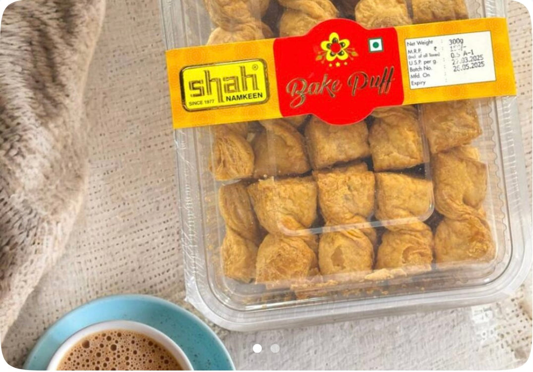 [Veg preparation] A classic bakery delight, marori puff is light, crispy and packed with rich flavors. Made with golden layers of flaky dough and slow baked to perfection.